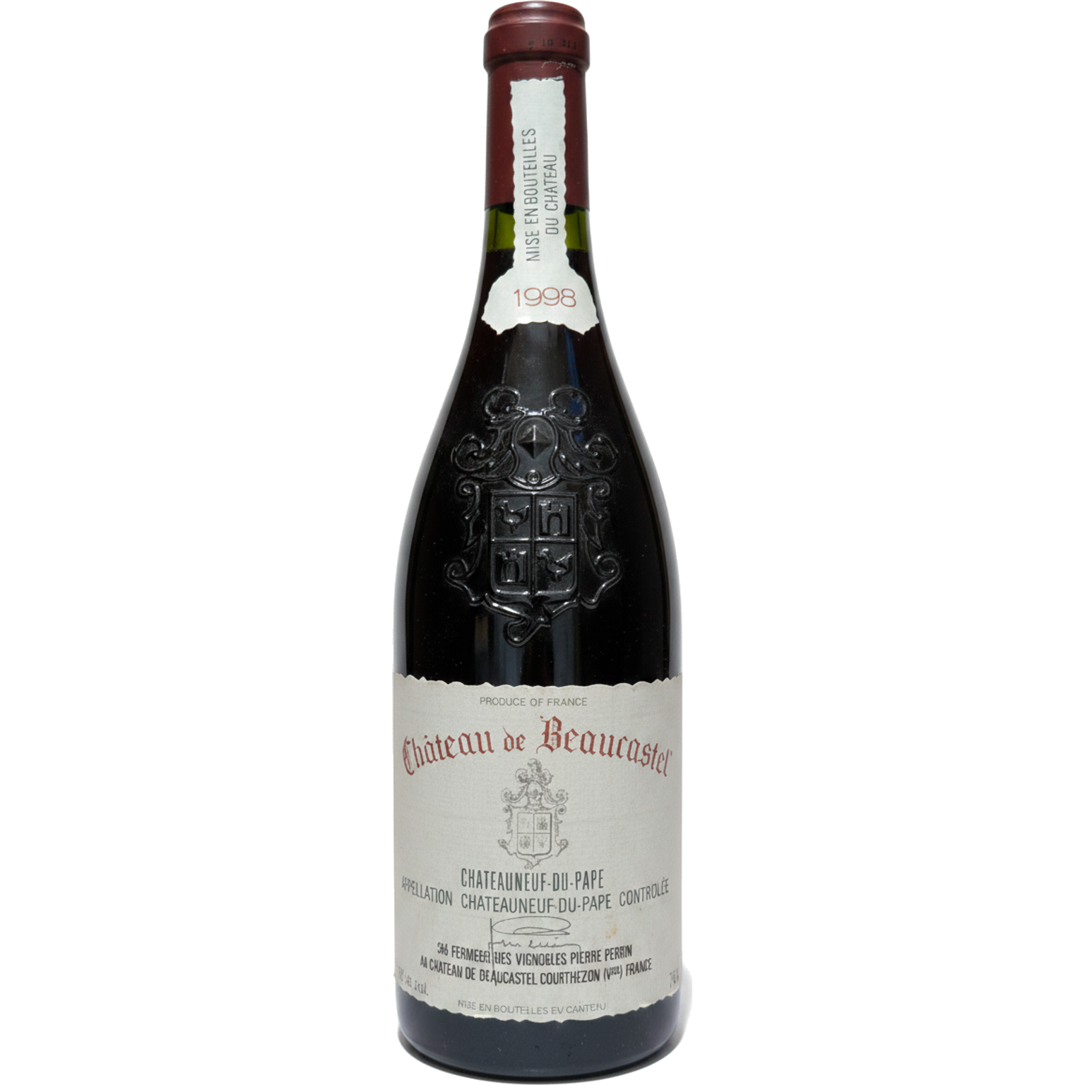 Label appears to be in good condition with clear text visible. The embossed coat of arms on the bottle neck is intact. No obvious damage or significant aging visible on the label or capsule.