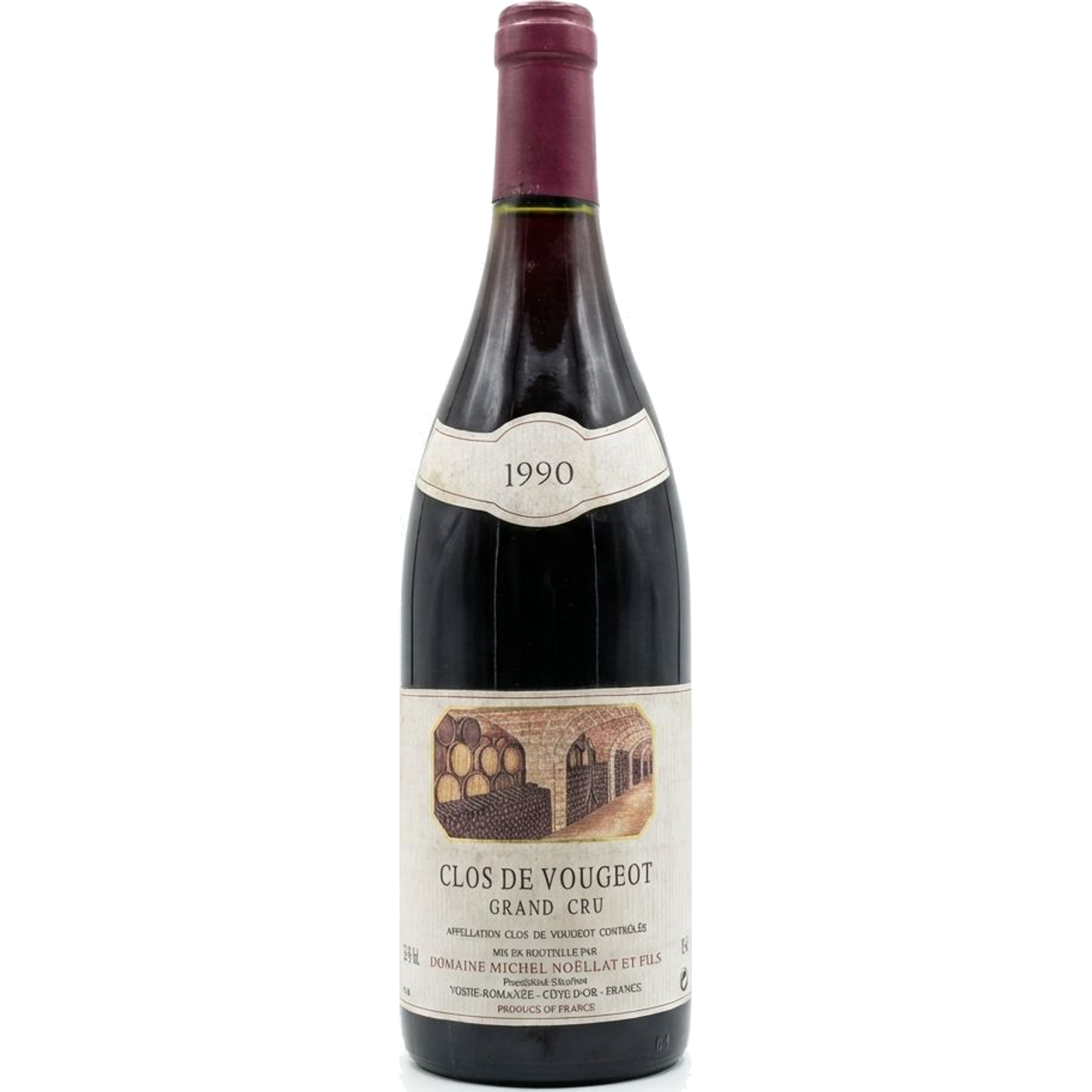 Label appears in very good condition with clean, intact text and imagery. The capsule is intact with a burgundy/red color. No visible staining or damage to the label. The bottle shows appropriate aging characteristics for a 1990 vintage.